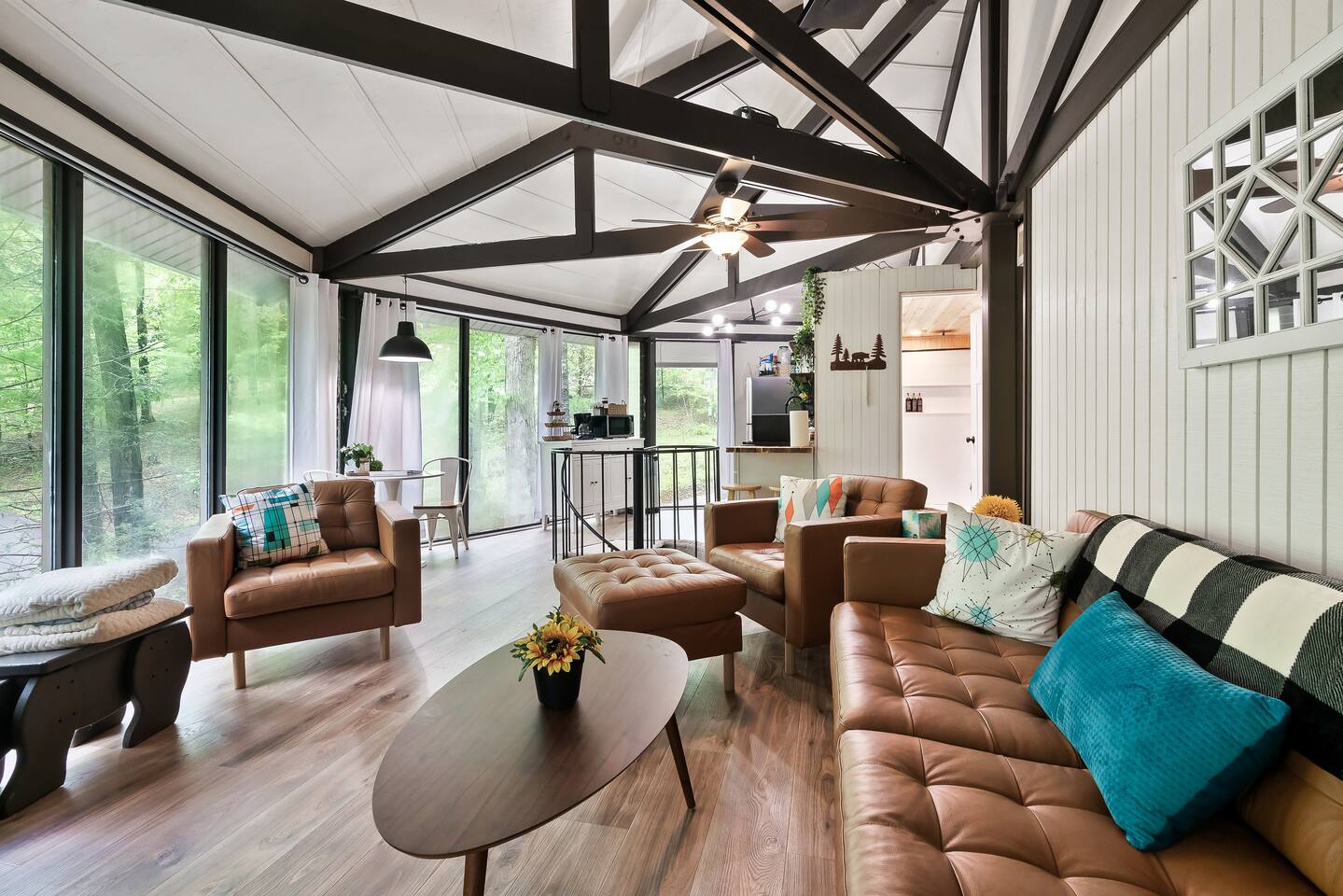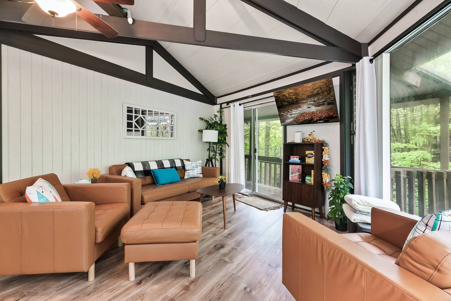 Townsend TN, Treehouse Chalet š² Mid-Century Modern in the Woods š Private Hot Tub Retreat š³ Fully Equipped Kitchen šÆ 10 Minutes from Park š Comfortable Beds & Relaxing Escape Perched in a gated golf community, this elevated haven offers more than serenityāitās your invitation to unwind, reconnect, and savor lifeās simple pleasures, all while being close to Smoky Mountain adventures.